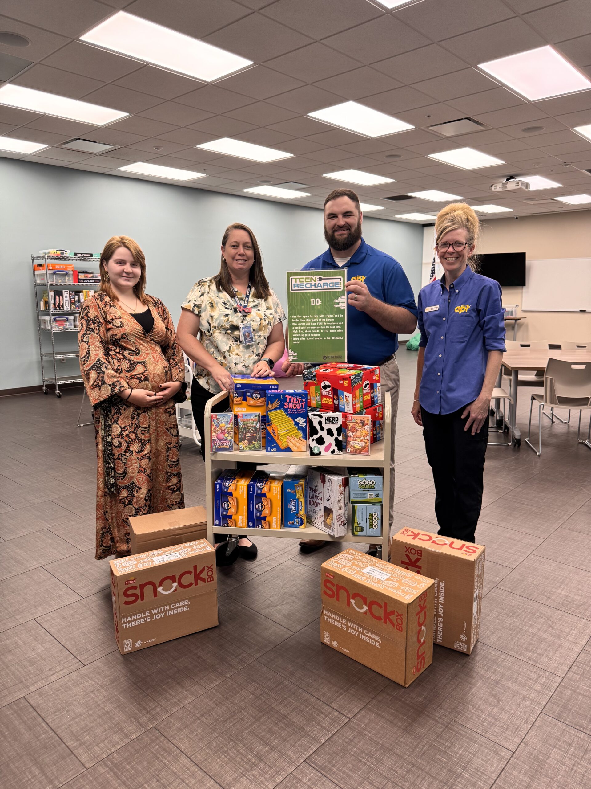 Donated to the local library’s RECHARGE program, which offers teens in the county a safe, welcoming space after school to study and connect with friends.